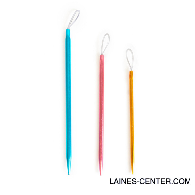 Finissez vos ouvrages en beauté avec ces aiguilles à coudre Katia, vendues en set de 3 aiguilles de couleur facile à reperer. Leur chas en nylon permet d'utiliser diverses épaisseurs de fil, pour tous vos ouvrages.