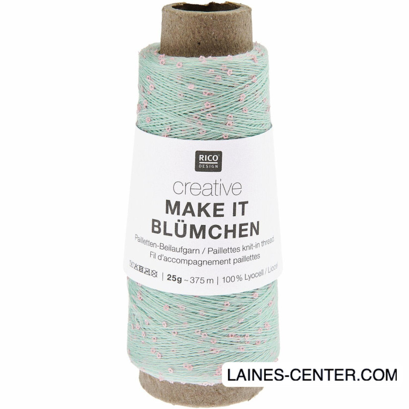 Creative Make It Blümchen est un fil spécifiquement conçu pour être tenu en double avec un autre fil. Son fil principal est composée à 100% de Lyocell, ce qui lui donne suffisament de souplesse pour ne pas rigidifier l'ouvrage et laisser la part belle à ses sequins en forme de petites fleurs !