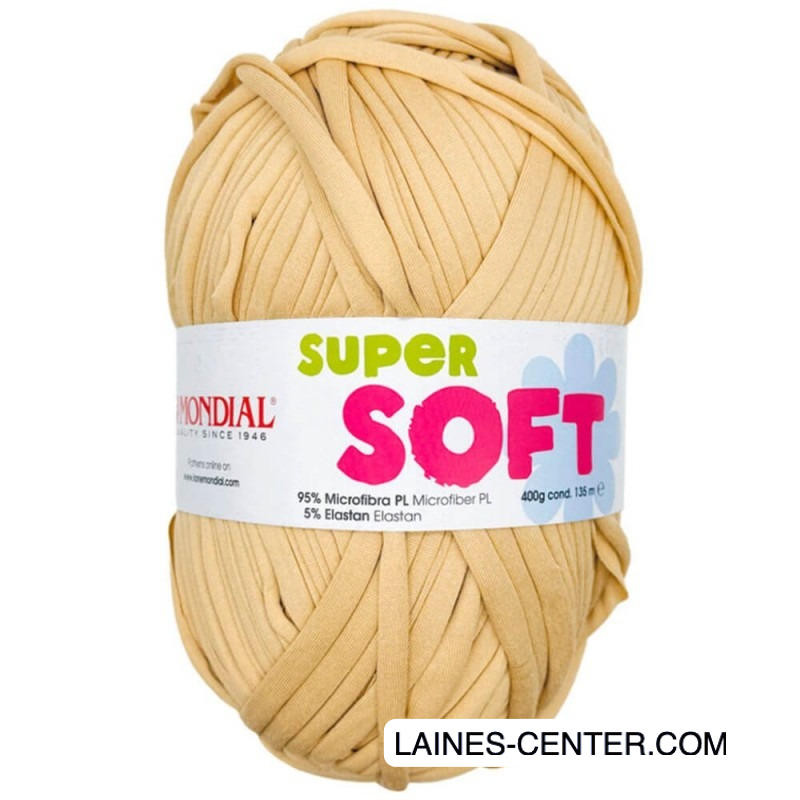 Super Soft est un fil ruban plat composé de polyester et d'élasthanne, à la fois doux, solide et légèrement extensible à travailler au crochet 10mm, pour des ouvrages solides et réguliers. Le fil est facile à travailler, et il s'adapte à tous vos projets : sacs, pochettes d'ordinateurs, tapis, panières, couffins...