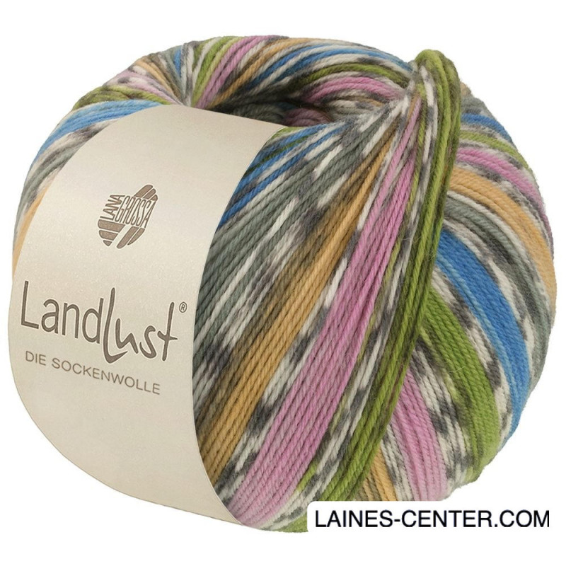 Landlust Die Sockenwolle est une laine type chaussettes à la composition classique (80% Laine et 20% Polyamide), qui allie confort et solidité pour vos projets tout terrain. Si elle est bien sur tout à fait indiquée pour des chaussettes, c'est également un fil robuste et doux qui se prête très bien à des pulls, châles, bonnets... Les possibilités sont infinies pour profiter de ses effets de couleurs originaux !