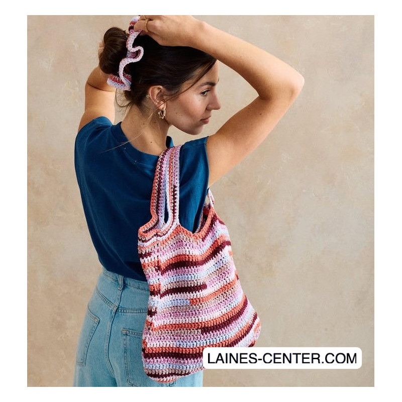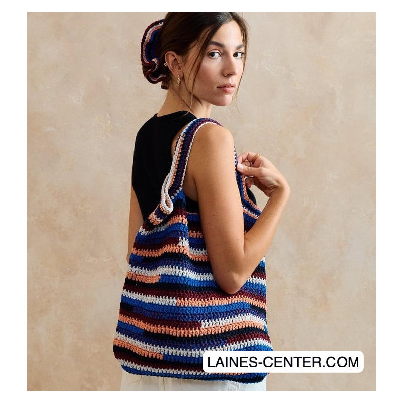 Gisela est un joli tote bag, aréalisé avec Phil Chromia, un coton multico qui vous offre un effet bayadère irrégulier sans effort ! Retrouvez également le chouchou assorti à crocheter.